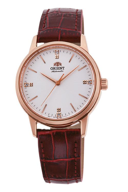 Orient Ladies Contemporary 3-Hands – лаконичные трехстрелочные механические женские часы, составляющие пару мужской коллекции ORIENT Stylish Contemporary. Стильный и аккуратный дизайн часов подчеркнут небольшим корпусом – всего 32 мм в диаметре, который подходит к любому случаю. Индексы в позициях 3, 6, 9 и 12 часов инкрустированы горным хрусталем. Часы оснащены механическим калибром с автоматическим и ручным заводом, за работой которого можно наблюдать через прозрачную заднюю крышку. Водостойкость составляет 10 бар.
