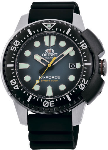 Новая модель ORIENT M-Force унаследовала все основные элементы своих предшественников этой серии. Часы имеют массивный брутальный вид, но при этом соответствуют всем веяниям современности. Диаметр корпуса моделей с защитными частями составляет 47,3 мм.