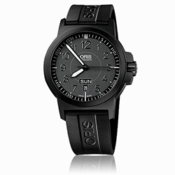 3. Oris Aviation BC 3 Advanced Day Date 01 735 7641 4364-07 4 22 05 Многокомпонентный корпус из нержавеющей стали с чёрным DLC-покрытием и матовыми ушками. Насыщенно-чёрный циферблат с арабскими цифрами разной величины, условными часовыми индексами и стрелками, покрытыми люминесцентным составом «Superluminova BG W9» белого цвета. Чёрный каучуковый ремешок с застёжкой из нержавеющей стали с чёрным PVD-покрытием. |