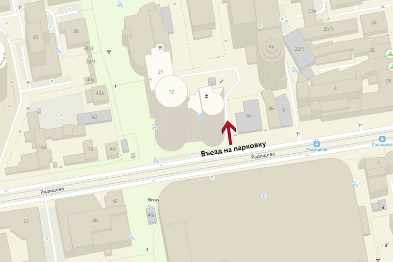 Парковка для посетителей салона на ул. Радищева, 10