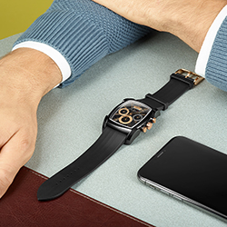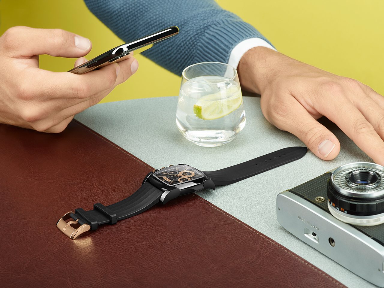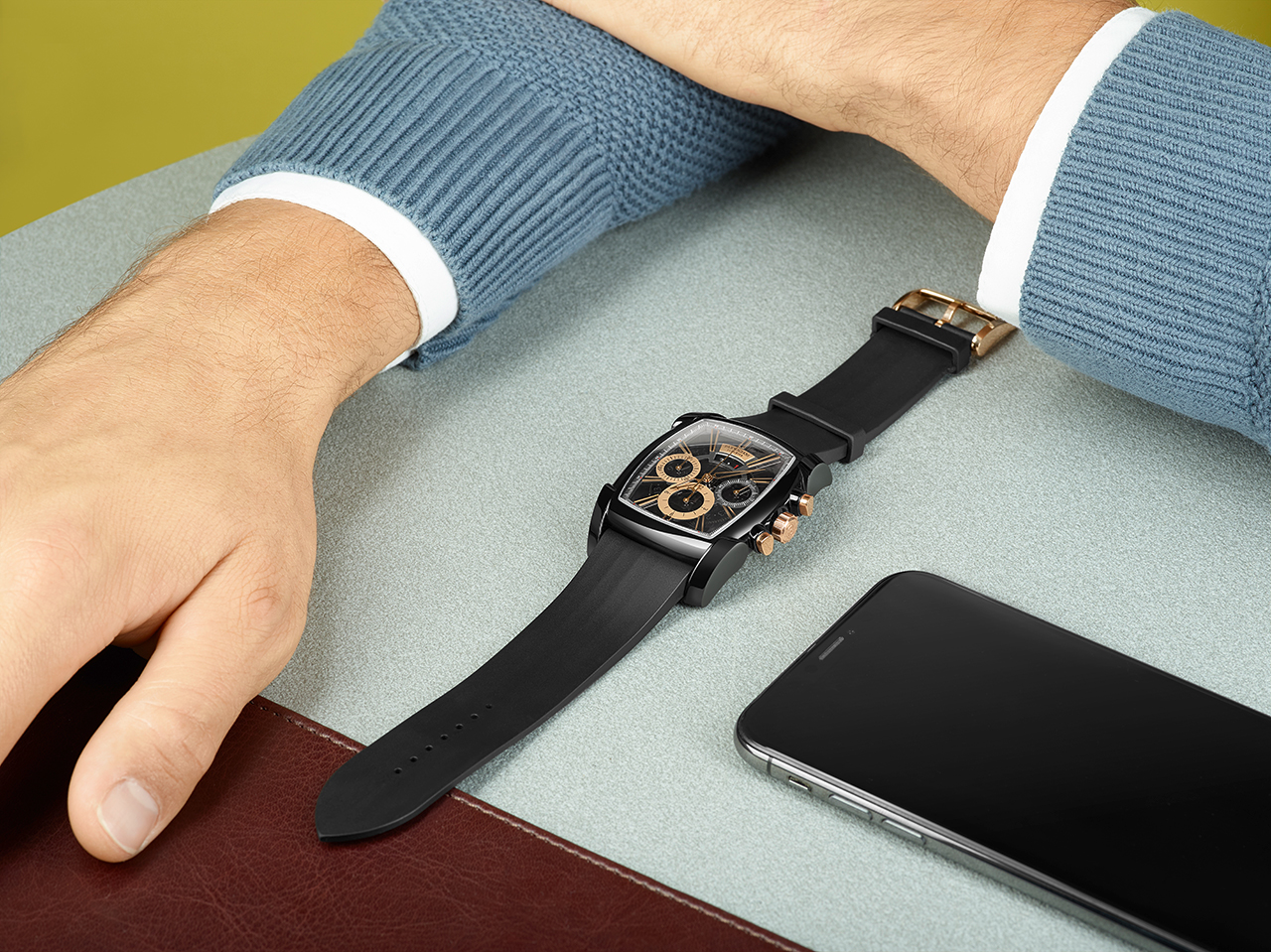 Ремешок: из черного каучука с пряжкой из 18-каратного розового золота
