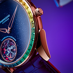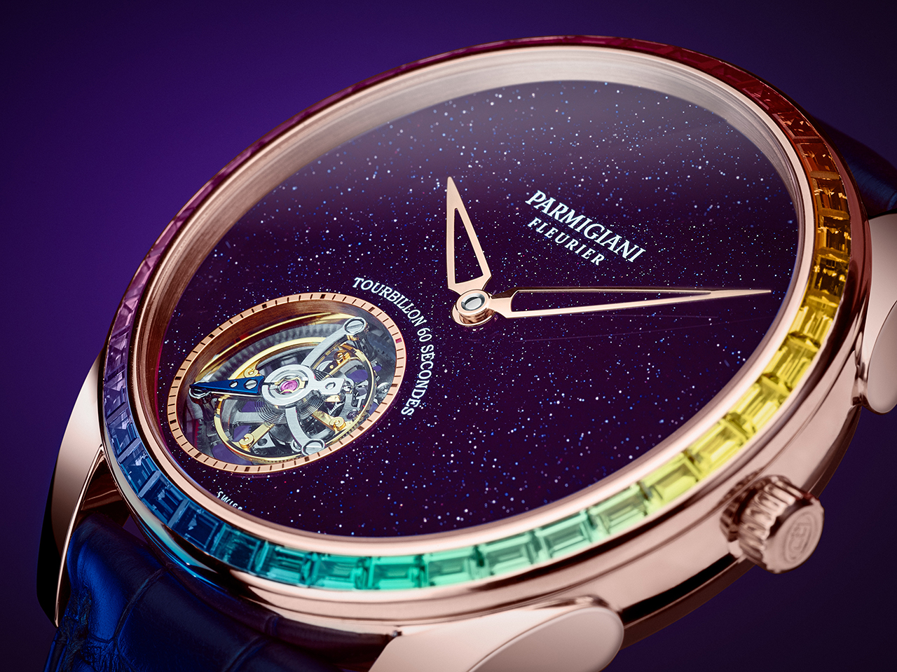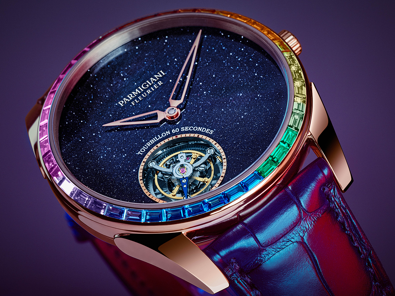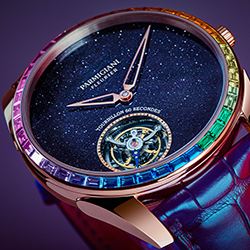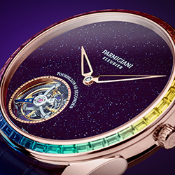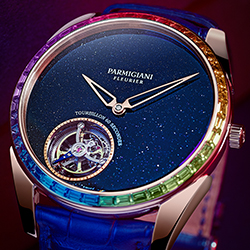 «Парящий» турбийон сияет в авантюриновом небе в обрамлении драгоценной радуги. Так выглядит новая модель Parmigiqni Fleurier – ультратонкая Tonda 1950 Moonbow.