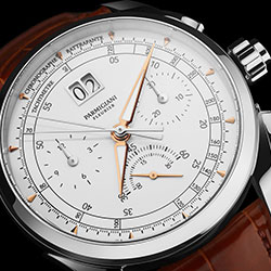 Часы Tonda Chronor Anniversaire диаметром 42,1 мм отлично облегают запястье. Эта эксклюзивная модель подчеркивает особую роль эргономики, столь важную для Мишеля Пармиджани. Две кнопки в форме капли, идеально сочетающиеся с ушками, в которые они интегрированы, создают упрощенную систему запуска/остановки хронографа. Кроме того, в рамках общих эстетических принципов марки такая конструкция дает возможность рассмотреть находящийся внутри уникальный механизм. Это стало возможным исключительно благодаря тому, что дизайн и механизм часов разработаны совместными усилиями профессионалов мануфактуры Parmigiani.