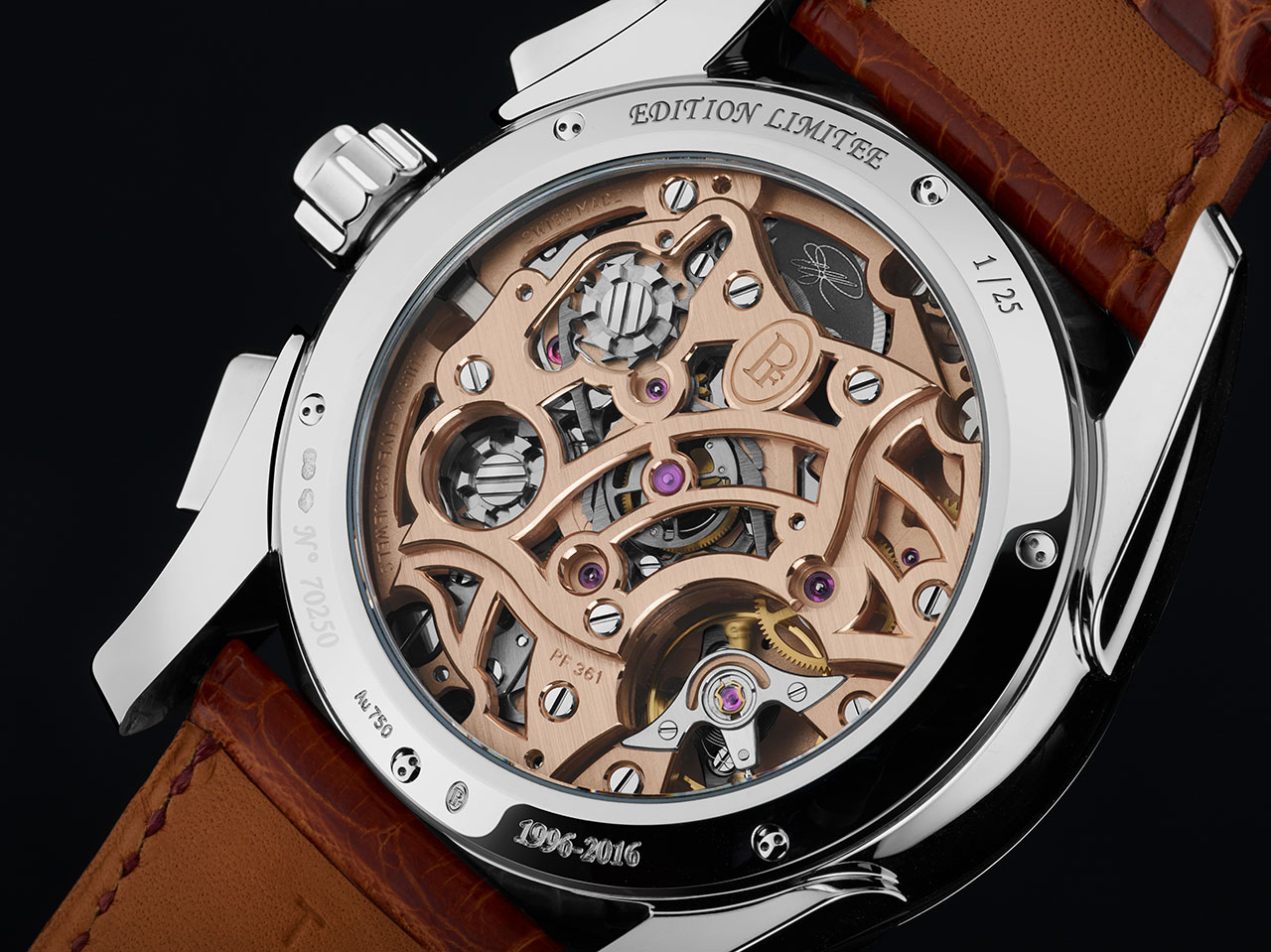 Для Мишеля Пармиджани калибр PF361 – это не просто результат нескольких лет работы, а ключевой этап в истории часовой мануфактуры и итог 20 лет развития производства: «Я мечтал о создании встроенного хронографа с самого момента основания нашего часового предприятия. Эта мечта обрела конкретную форму буквально накануне 20-летнего юбилея нашей марки, и этот срок абсолютно оправдан, так как он отражает эволюцию нашей мануфактуры. Чтобы создать встроенный хронограф, необходимо освоить производство целого ряда важных и трудоемких деталей, входящих в него. При этом важно понять не только, как их изготовить, но и как использовать и как сделать его настоящим «сердцем» калибра. Необходимо четко осознавать потенциал и пределы своих возможностей. Вот почему встроенный хронограф – это настоящий прорыв, и он под силу только опытному производителю. Часы Tonda Chronor Anniversaire – результат 20-летней работы».