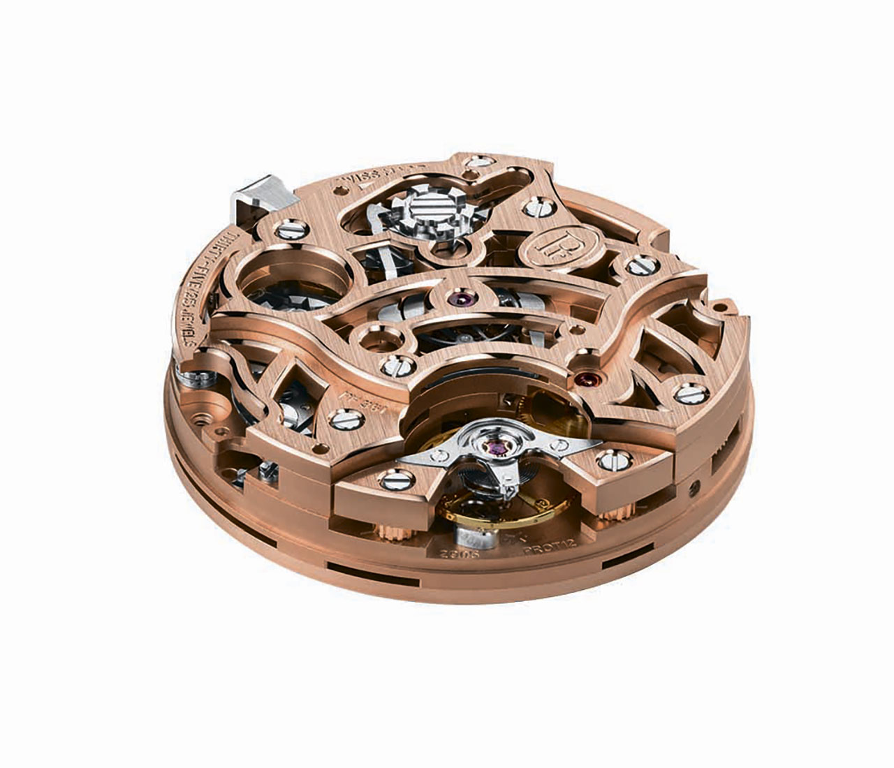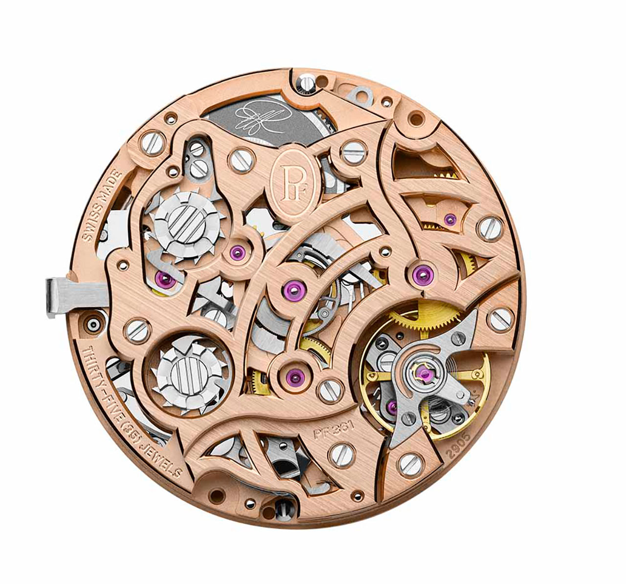 - Калибр PF361 с ручным подзаводом из розового золота 750-й пробы.