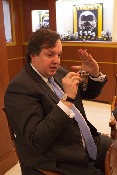 Собственники салонов «Студия времени» разглядели уникальную марку в то время, когда в России о ней еще мало кто слышал, не было ни одного фирменного бутика и даже представительства. Знакомство состоялось несколько лет назад во время поездки в Объединенные Арабские Эмираты. Уникальные и сложные механизмы настолько поразили собственников «Студии времени», что они, не откладывая, решили привезти марку в Екатеринбург. В то время о Parmigiani знали лишь люди, сведущие в часовом деле, другие же при упоминании названия нередко недоумевали: «Пармиджани… А что это? Сыр?».
