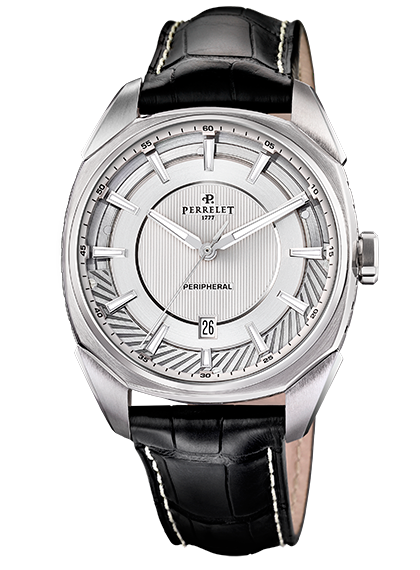 | 1. Perrelet LAB A 1100/1: стальной корпус, серебристый циферблат, чёрный кожаный ремешок. | |