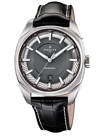 | 2. Perrelet LAB A 1100/2: стальной корпус, антрацитовый циферблат, чёрный кожаный ремешок. | |