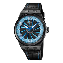 - Циферблат: Ледяной голубой с турбиной из анодированного алюминия.