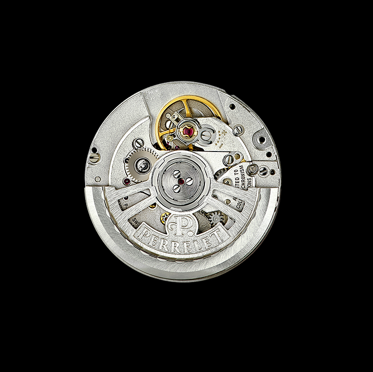 - Ротор: резной, с родиевым покрытием и логотипом Perrelet.