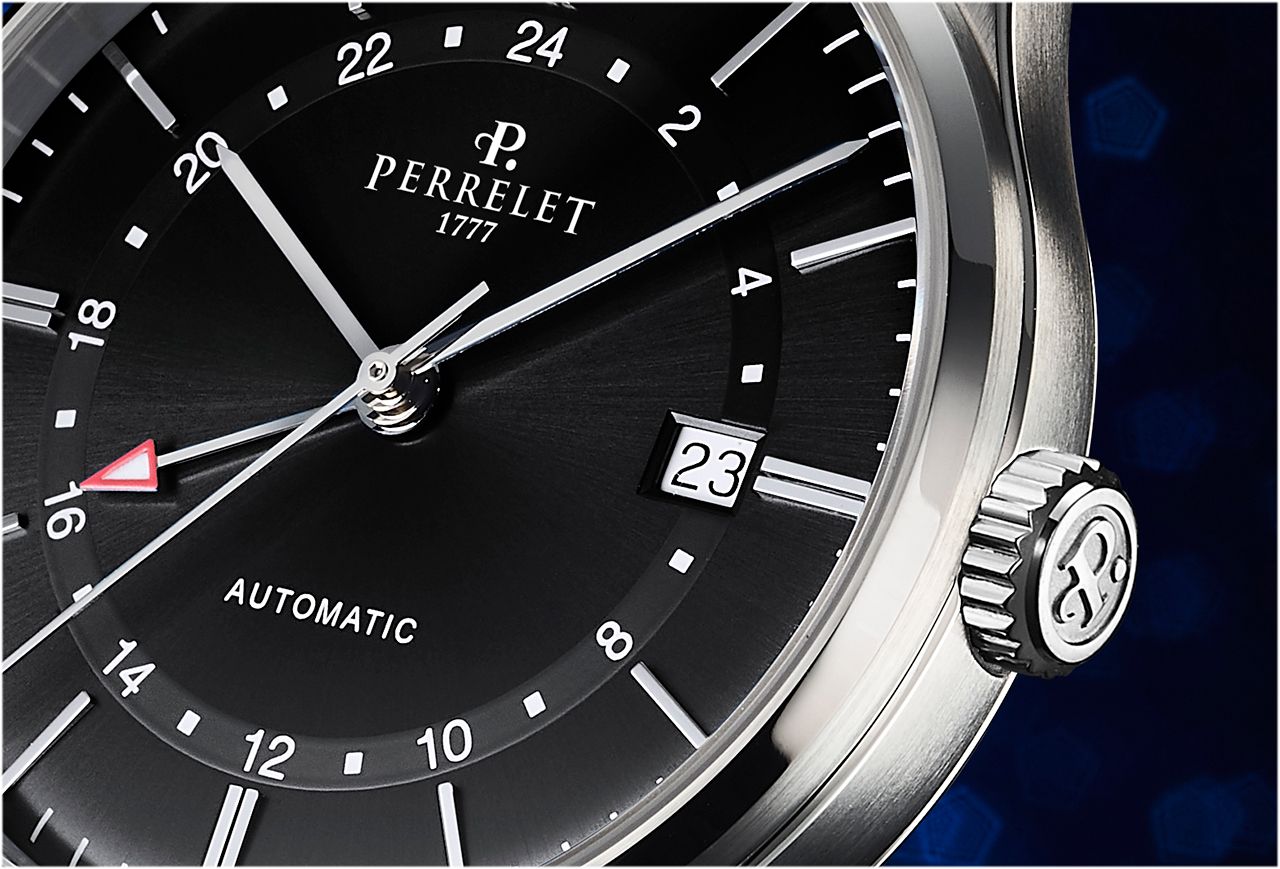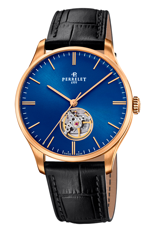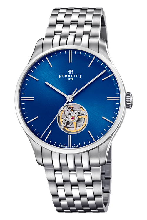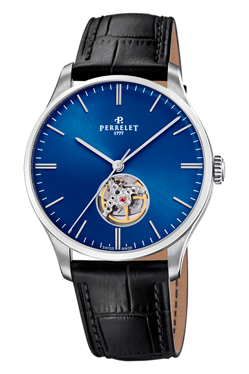 Модели Weekend 3-Hands, Open Heart и GMT дополнены черным ремешком из телячьей кожи с теснением под кожу аллигатора и классической застежкой с логотипом Perrelet. Также представлен вариант с эргономичным стальным браслетом из 7 звеньев с чередованием атласной и полированной отделки.