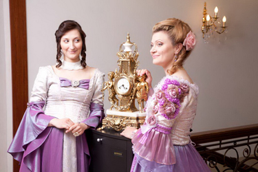 "А что это за красавицы-дамы, как будто на несколько часов перенесенные прямиком с Версальского бала-спектакля, поставленного на потеху мадам де Помпадур, в часовой салон. И вообще, что происходит", - вероятно, примерно так думал мужчина, который пришел за часами как раз в самый разгар съемки. Нет-нет, а он оборачивался от витрины и с любопытством рассматривал Марию и Юлию, которые так вошли в образ, что их вполне можно было отправить на съемочную площадку какого-нибудь фильма про те времена, когда доблесть и честь прекрасной дамы были не пустым звуком, и каждый день при дворе устраивались пышные действа.
