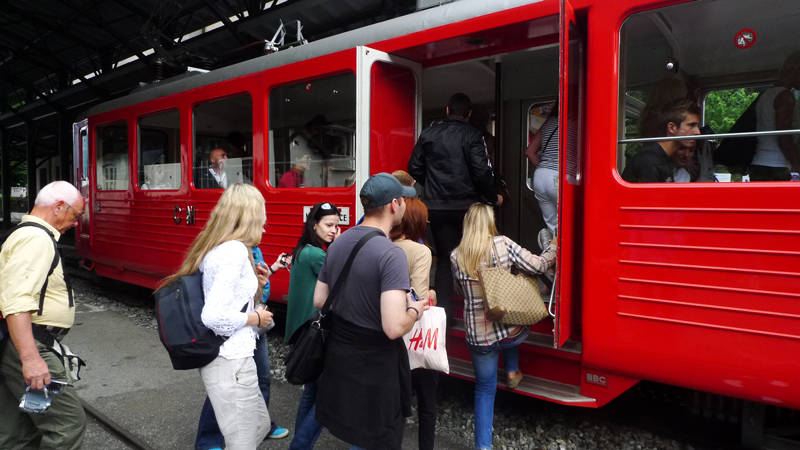 После прогулки нас повели на вокзальчик, выдали жетоны (кстати, на них тоже была символика горы, в том районе она есть не только на сувенирах), мы сели в маленький паровозик и нас повезли на гору.