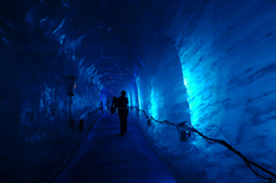 С плато мы стали подниматься вверх, но уже не по канатной дороге, а по маленьким лесенкам. Идем, смотрим вокруг, кажется - гора, а там лед. Оказалось , самый большой ледяной грот. Это одна из самых знаменитых достопримечательностей Монблан.