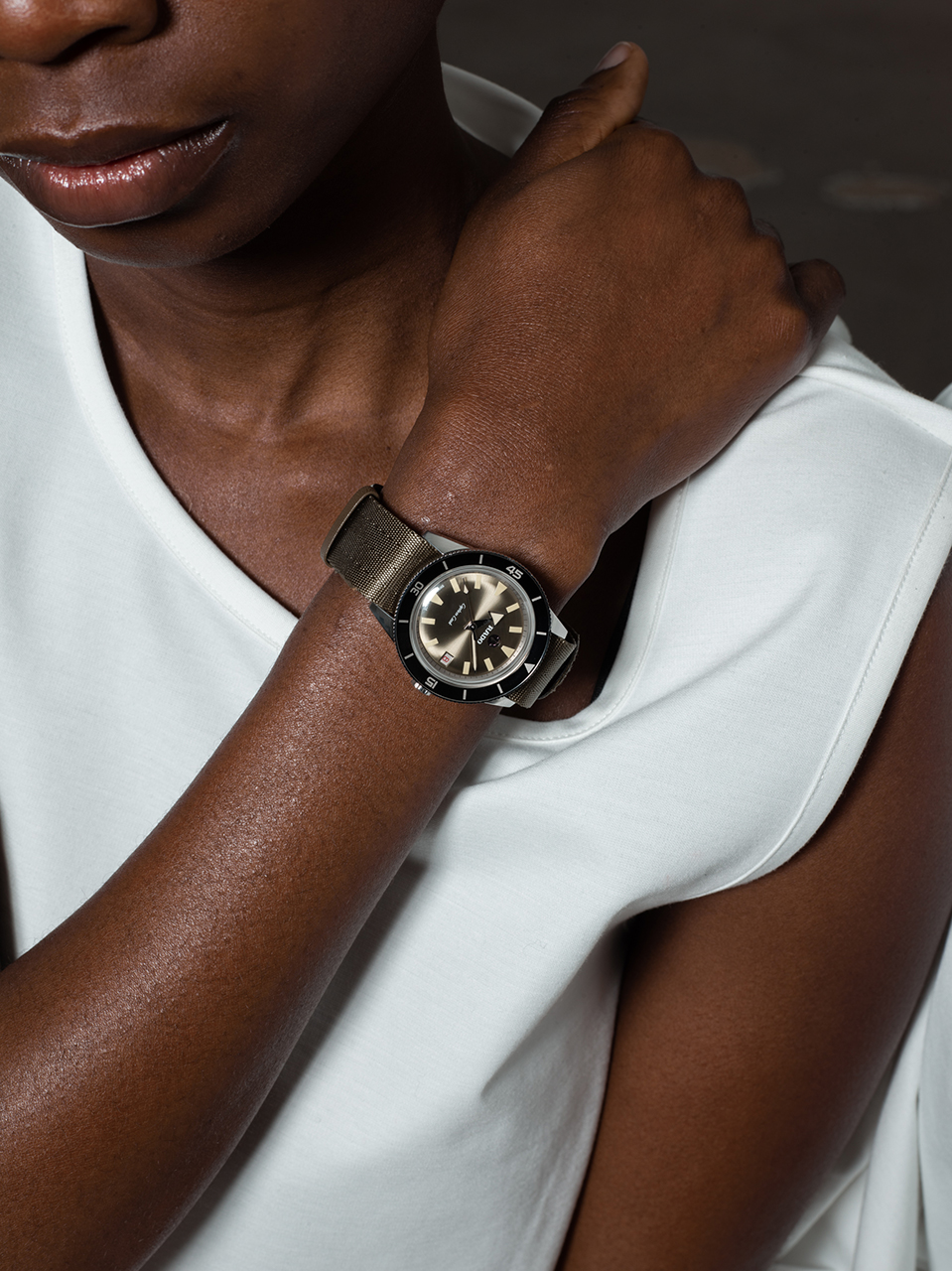 Выпущенная лимитированной серией всего в 1962 экземпляра, новая модель Captain Cook 2019 года сохранила винтажный стиль. При этом продается в комплекте с современным дорожным кожаным кейсом и набором сменных ремешков. Если вы сегодня не расположены к винтажному ремешку из коричневой кожи, его можно заменить на браслет из нержавеющей стали с миланским плетением или прочный ремешок NATO.