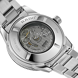 Часы комплектуются браслетом из нержавеющей стали и системой EasyClip от Rado. В комплекте часов предусмотрены два варианта ремешков: классический кожаный и текстильный в стиле НАТО. Задняя крышка с тонированным сапфировым стеклом и подписью Кэмерона Норри подчеркивает эксклюзивность модели.