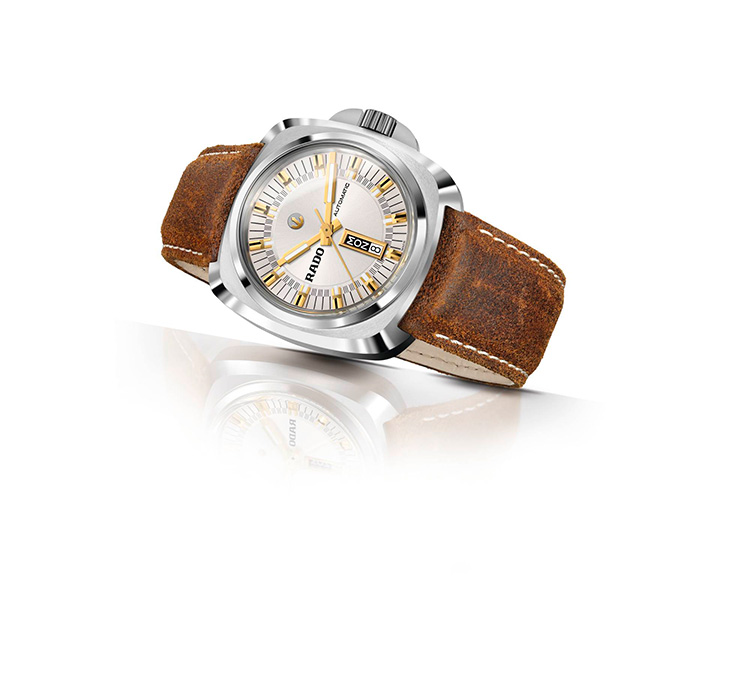 На циферблате белого, чёрного или шоколадно-коричневого цвета расположены центральные прямоугольные стрелки часов и минут, центральная тонкая секундная стрелка, условные часовые индексы, минутная и секундная шкала, прямоугольный указатель дня недели и даты (над отметкой «6 часов»), символ движущегося якоря на сером или красном фоне. Стрелки, условные часовые индексы, символ якоря, окантовка указателя дня недели и даты имеют альтернативную отделку: жёлто-золотое PVD-покрытие или тёмно-серое PVD-покрытие. Кроме того, часовая и минутная стрелки, а также условные часовые индексы снабжены белыми вставками с люминесцентным покрытием «Superluminova». Секундная стрелка чёрной версии часов имеет красный наконечник. Ещё одним, декоративно-информационным, элементом циферблата являются горизонтальные надписи «Rado» и «Automatic» чёрного, серого или белого цвета.
