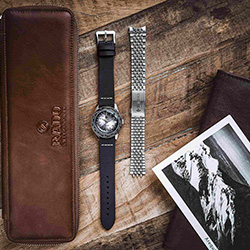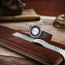 Лимитированная серия часов Captain Cook Over-Pole представлена в стильном кожаном кейсе из коричневой кожи. В набор также входит браслет из нержавеющей стали с узором «рисовое зерно», который легко заменить при помощи системы EasyClip для создания нового образа.