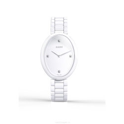 Пожалуй, впервые в этом году мужчины искренне завидовали женской части поклонников RADO. Новая модель Esenza Ceramic Touch в очередной раз доказала, что RADO – новатор и всегда на шаг впереди. Первые часы с сенсорной коррекцией индикаторов времени тут же прозвали часовым iPhone. Сходство усиливает то, что создано по три версии часов в корпусе как из черной, так и из белой керамики. Заводной головки на данной модели нет, а управляются механизм последовательными нажатием и движением пальца по одной из сторон корпуса – поглаживанием «бочков». Подержав пару секунд палец на отметке 8 часов вы оживляете сенсорный механизм, а затем, поглаживая левый бок, корректируете положение часовой стрелки, которая прыгает с шагом в один час. Касаясь правого бока, можно менять положение минутной стрелки. Прекрасно понимая, что владельцу RADO Esenza Touch захочется часто демонстрировать свою сенсорную диковину, создатели оснастили модель особо мощной батарейкой, которая имеет запас автономности 4 года (если по бокам гладить не очень часто). Отсутствие заводной коронки не только не уменьшает привлекательности Esenza Ceramic Touch, но и позволяет сохранять идеальный маникюр. А довершением радости стал полностью керамический браслет, который впервые используется в данной модели.