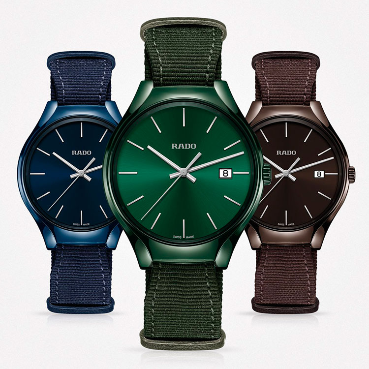 Швейцарский бренд наручных часов «Rado», через восемь лет с момента выпуска первых моделей коллекции «True», созданных с использованием высокотехнологичной керамики, представляет её долгожданное многоцветное продолжение. В этом году в указанную коллекцию вошли четыре модели часов «Rado True Colours» серой, тёмно-синей, шоколадно-коричневой и тёмно-зелёной расцветки – от корпуса до ремешка и застёжки.