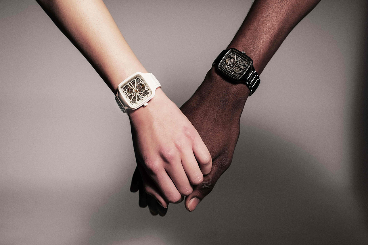 Открытое сердце Rado True Square пробуждает самые важные моменты вашей совместной жизни – и драгоценные воспоминания, запертые в вашем сердце. Квадратный корпус с мягкими углами и краями выполнен из материала, который на ощупь такой же легкий и теплый, как прикосновение любимого человека. А скелетонизированный циферблат манит взгляд к открытому сердцу механизма внутри. Форма подходит для любого запястья, а дополняющие друг друга черно-белые варианты станут идеальным подарком на День святого Валентина.
