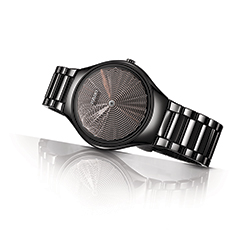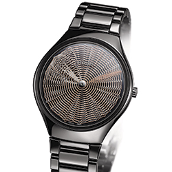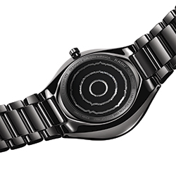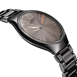 Часы True Thinline Deep Web, выполненные из полированной черной высокотехнологичной керамики и оснащенные инновационными стрелками-дисками, выпущены лимитированной серией в 1001 экземпляр с особой гравировкой на задней части корпуса.