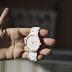 - Заводная головка из полированной высокотехнологичной керамики белого цвета.