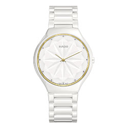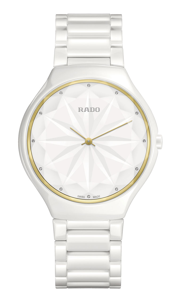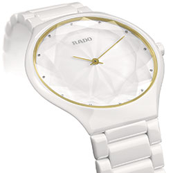 Часы True Thinline Gem, выполненные из белоснежной высокотехнологичной керамики, сапфирового стекла со специальной огранкой и украшенные бриллиантовыми делениями, выпущены лимитированной серией в 1001 экземпляр с особой гравировкой на задней части корпуса. Это новая версия часов в коллекции True Thinline, созданная с независимым дизайнером и Rado — компанией, обладающей множеством международных наград в области дизайна.