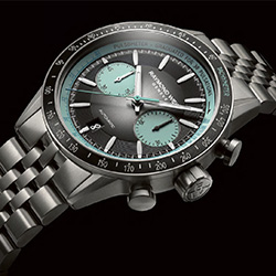 Черный градиентный циферблат служит идеальным холстом для бирюзовых акцентов счетчиков хронографа и пульсометра, подчеркивая красочность модели. Симметричная конструкция Bi-Compax включает в себя 30-минутный счетчик хронографа и индикатор малой секундной стрелки. Крупные часовая и минутная стрелки, дополненные никелированными индексами с белым люминесцентным покрытием Super-Luminova®, обеспечивают оптимальную считываемость показаний. Окошко даты, расположенное в положении «6 часов», вносит свой вклад в общую симметрию циферблата. 5-рядный титановый браслет завершает легкую и эргономичную конструкцию часов.