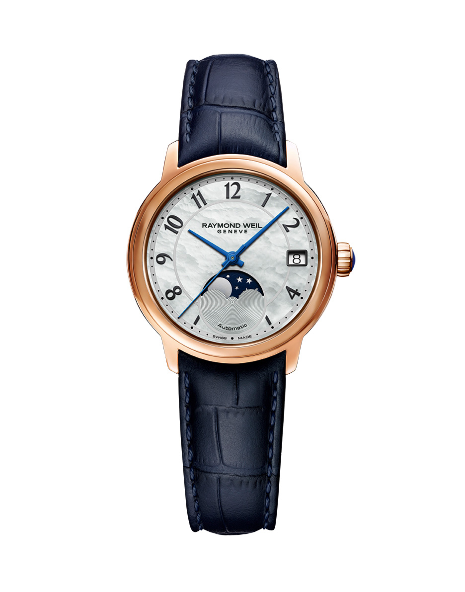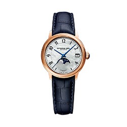 Коллекция Maestro от RAYMOND WEIL, впервые представленная в 2010 году, воспевает виртуозность швейцарского часового мастерства и благородство классической музыки. Эти механические часы с автоподзаводом, изготовленные с соблюдением швейцарских часовых традиций, оснащены индикатором фаз Луны в положении «на 6 часов» и 38-часовым запасом хода.