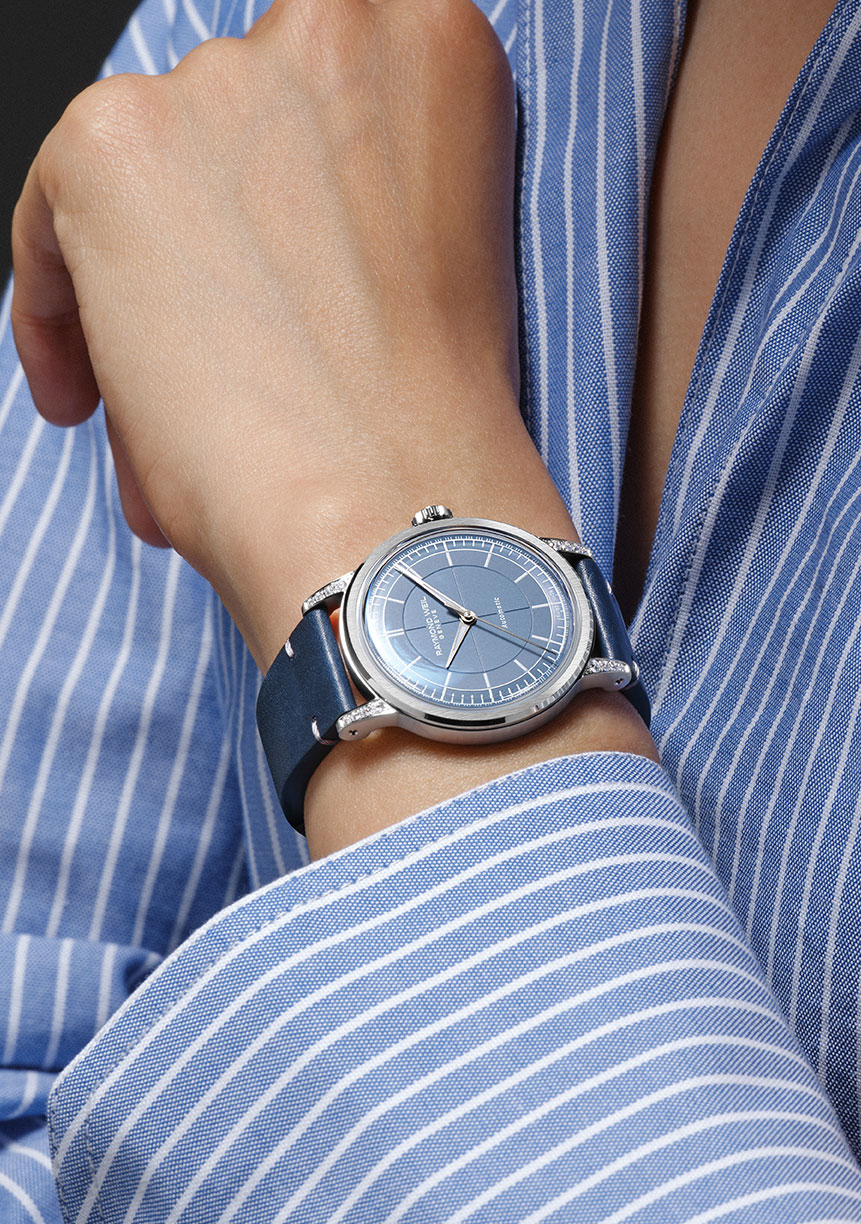 Модель Millésime 2930-STC-65001 излучает классическую элегантность. Тонкий корпус из нержавеющей стали диаметром 39,5 мм дополнен серым кожаным ремешком с уникальной деталью Wstitches. За сапфировым стеклом скрывается фактурный циферблат и индикатор малой секундной стрелки, напоминающий компас. Это сочетание деталей и оригинальной отделки покорит ценителей часового искусства.