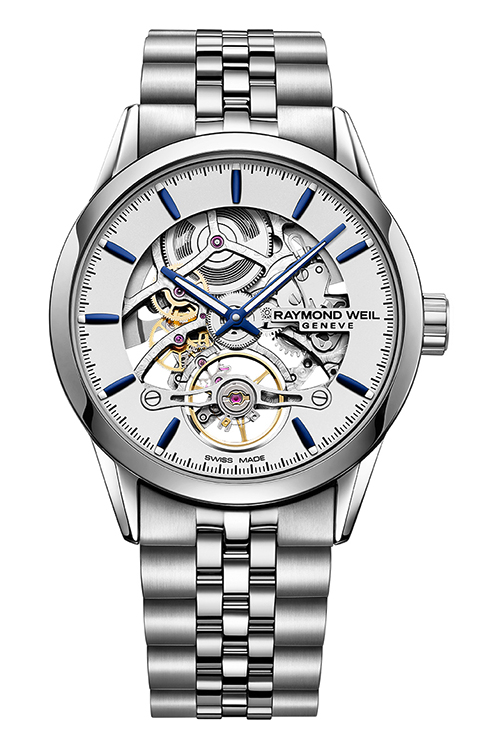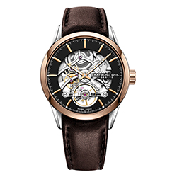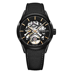Обрамленный стальным корпусом диаметром 42 мм, ансамбль циферблата и прозрачных деталей создают основу эстетичного дизайна часов. Модель Calibre RW1212 приводится в движение механизмом с автоподзаводом и совершает 28 800 колебаний в час, имеет запас хода 38 часов. Усовершенствованный ротор, декорированный логотипом RAYMOND WEIL с гравировкой, повышает прозрачность часов.