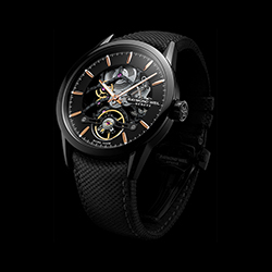 - Механические часы-скелетон с автоподзаводом и открытым балансом.