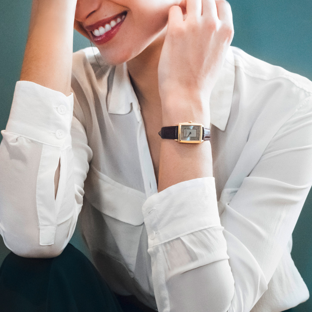 Помещенные в элегантные прямоугольные корпуса, эти новые творения излучают очаровательную простоту. В каждом варианте циферблата отображаются только часы, минуты и дата. Все часы оснащены швейцарским кварцевым механизмом, обеспечивающим точность хода при отсутствии необходимости регулярного подзавода.