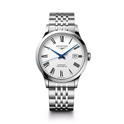 L2.821.4.11.6 Модель в корпусе из нержавеющей стали диметром 40 мм украшена 12 римскими цифрами на белом матовом циферблате. Часы оснащены механизмом с автоподзаводом калибр L888.4 и монокристаллической кремниевой пружиной баланса, обладающей уникальными свойствами. Завершает облик часов браслет из нержавеющей стали. |