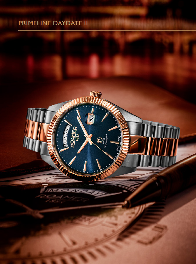 Roamer представляет обновленную модель Primeline DayDate II, которая совмещает изысканный дизайн и надежный механизм Sellita SW240 Swiss Made. Эти часы представляют благородство и элегантность часовой классики, сохраняя все традиции швейцарского часового мастерства.