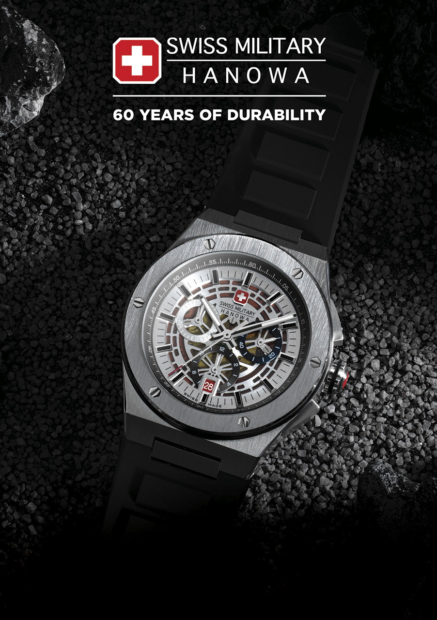 В 2023 году бренду SWISS MILITARY HANOWA исполнилось 60 лет. Говоря языком часовщиков, стрелка сделала полный оборот (пройдя 60 минут). И вот минутная стрелка оказалась на нулевой отметке, под флагом (на позиции «12 часов» на циферблатах SWISS MILITARY HANOWA водружен швейцарский флаг). Для часовщиков это важная круглая дата.
