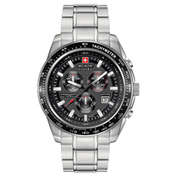 | 9. Swiss Military Hanowa Crusader Chrono 6-5225.04.007: корпус из нержавеющей стали 316L, безель с ионным покрытием чёрного цвета и тахиметрической шкалой, чёрно-серый циферблат с часовыми индексами серого цвета, браслет из нержавеющей стали. |