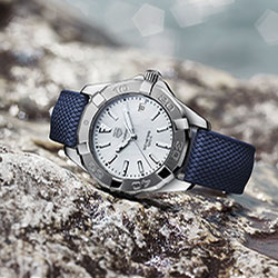 Самым привлекательным акцентом новых женских моделей Aquaracer стал всплеск синего цвета – глубокий и чарующий оттенок, который напоминает о счастливых днях, проведенных на яхте. Синий циферблат обладает эффектом sunray и украшен выгравированным узором в виде песчаных волн. Орнамент напоминает о нежных волнах, набегающих на песчаные берега тропического пляжа. Две модели Aquaracer Ladies с синим циферблатом представлены на браслете из нержавеющей стали или на каучуковом ремешке того же синего оттенка. Текстура ремешка имитирует парусный канат, что в очередной раз подчеркивает принадлежность к коллекции Aquaracer. Каучуковый ремешок идеально подходит для занятий водными видами спорта. Он прочный, удобный, легкий и водонепроницаемый. Третью модель Aquaracer Ladies украшает элегантный перламутровый циферблат на каучуковом ремешке. Каждая модель оснащена указателем даты.