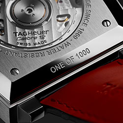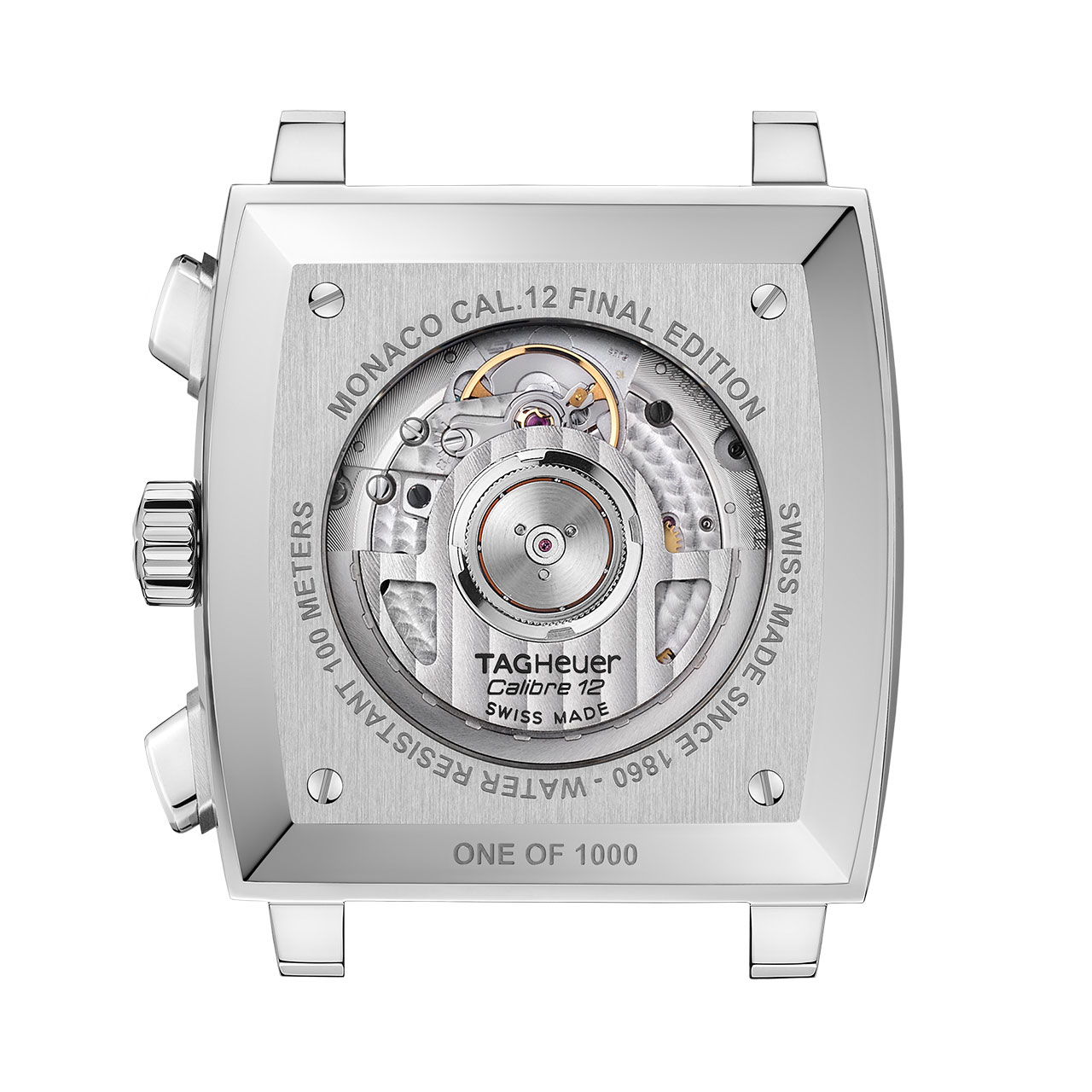 В отличие от изначального механизма Monaco Calibre 11 новый Calibre 12 обновил внешний вид знаменных часов. Теперь заводная головка расположена с правой стороны корпуса – вместо левой, как это было с Calibre 11. TAG Heuer представляет последнюю модель Calibre 12 Monaco с потрясающим серым циферблатом. Модель из нержавеющей стали оснащена классическим черным ремешком из кожи аллигатора с матовым рутениевым циферблатом. Рутений является частью платиновой группы и переливается разными оттенками в зависимости от источника света. Гладкие черные опаловые счетчики в позициях 3 и 9 часов создают изысканный контраст с матовым циферблатом. Центральная секундная стрелка, 12-часовой указатель и кончики часовой и минутной стрелок ярко-красного оттенка подчеркивают современный стиль этой легендарной модели. Всего выпущено 1000 экземпляров Monaco Calibre 12 Final Edition, а на корпусе из нержавеющей стали каждой модели выгравирован ее лимитированный номер. (6,7)