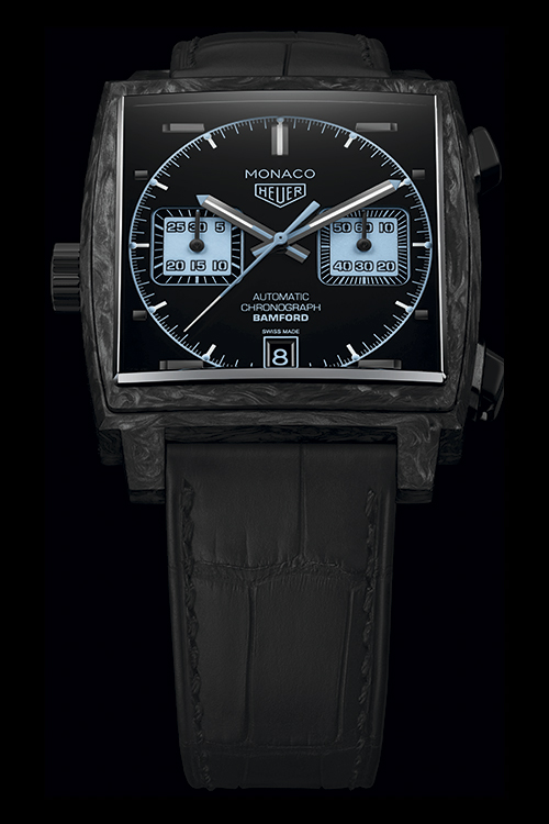 Характерный почерк Джорджа Бамфорда нашел свое воплощение в легендарной модели TAG Heuer Monaco Bamford, названной в честь него. Несмотря на свежее прочтение, новая версия часов сохранила оригинальные черты: квадратный 39-миллиметровый циферблат и расположенную слева заводную головку. Корпус обновленной модели выполнен из очень легкого материала повышенной прочности – углеволокна. Этот материал идеален для производства часовых изделий.