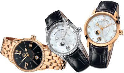 Итак, мужская версия новой коллекции «Classico Luna» предстаёт перед нами в круглом корпусе диаметром 40 мм, выполненном из высококачественной стали или розового золота (18 карат) и выделяется своей подчёркнутой простотой. Диаметр корпуса женской версии, такой же формы, чуть меньше – 35 мм, но материал изготовления – только розовое золото (18 карат), к тому же рант и ушки корпуса инкрустированы 60 бриллиантами, вес которых составляет 1,2 карата. Обе версии оснащены фирменным автоматическим механизмом калибра «UN-829» с запасом хода на 42 часа.