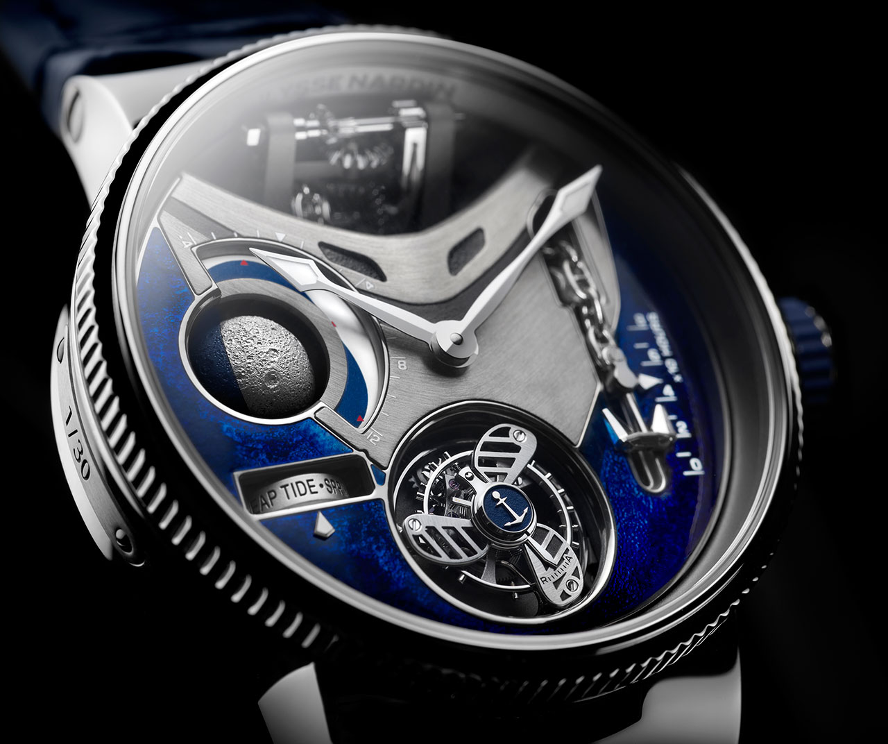 С появлением современных спутниковых навигационных систем необходимость вычислять местоположение судна в море при помощи секстанта или использовать морские хронометры пропала. И исследовательская команда Ulysse Nardin сосредоточилась на том, что может потребоваться современному владельцу мегаяхты. Поэтому на циферблате появилась сфера, отвечающая за отображение фаз Луны. Ее выполнили в форме уменьшенной трехмерной копии ближайшего спутника Земли. Для усиления эффекта ее поверхность напоминает фактическую структуру поверхности Луны и выполнена при помощи сверхточной гравировки. Одна полусфера (для обозначения периода новолуния) изготовлена при помощи метода напыления синего цвета на поверхность, вторая (для обозначения Луны, идущей на убывание) использует родиевое покрытие.