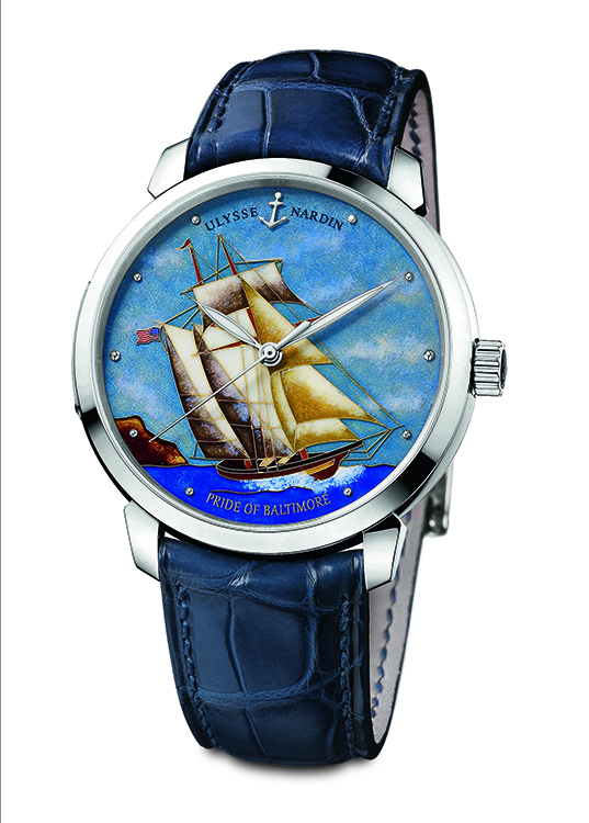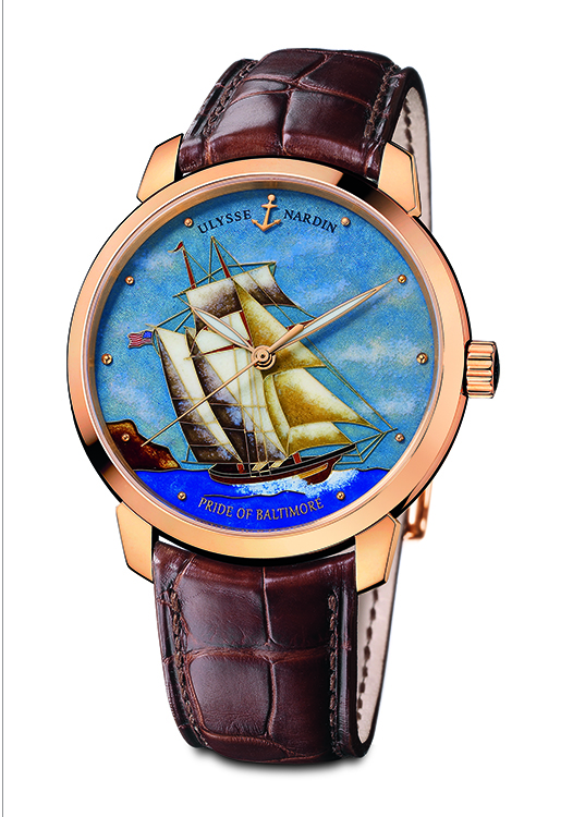 В ушедшем, 2013 году швейцарская мануфактура и одноимённая марка «Ulysse Nardin», хорошо известная самым большим количеством изобретений в области механических часов и являющаяся, к тому же, рекордсменом по количеству наград, обновила коллекцию «Classico Cloisonné» выпуском новой модели наручных часов «Pride of Baltimore».
