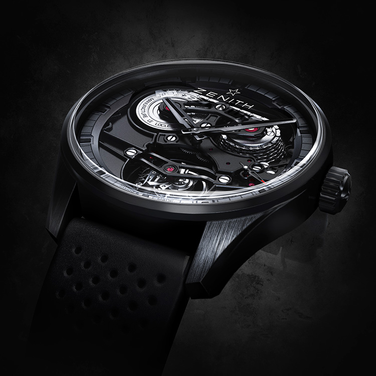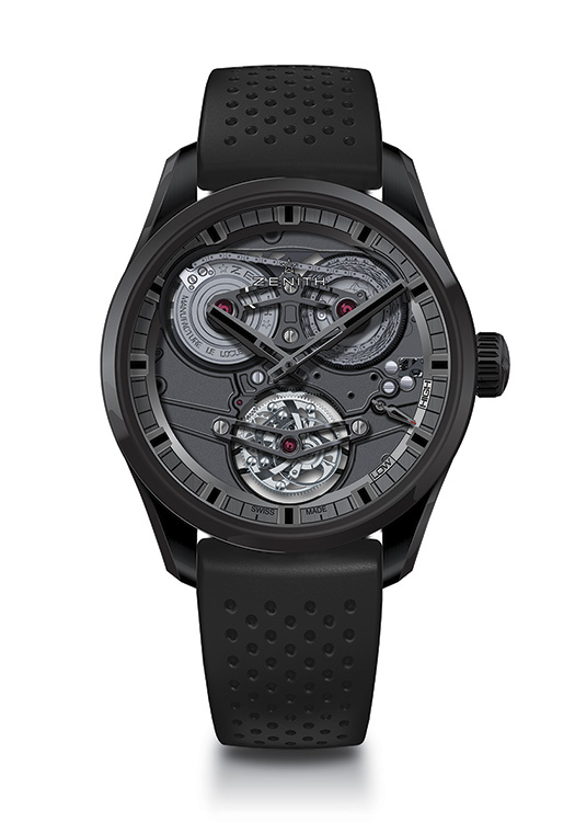 Новые часы-посвящение в аристократично-чёрном керамическом корпусе, оснащённые высокочастотным калибром с интегрированными культовыми усложнениями – турбийоном2 и фузейно-цепной передачей3 демонстрируют очередной технико-эстетический триумф марки «Zenith» и обладают притягательной силой абсолютно открытой архитектуры передовой механики.