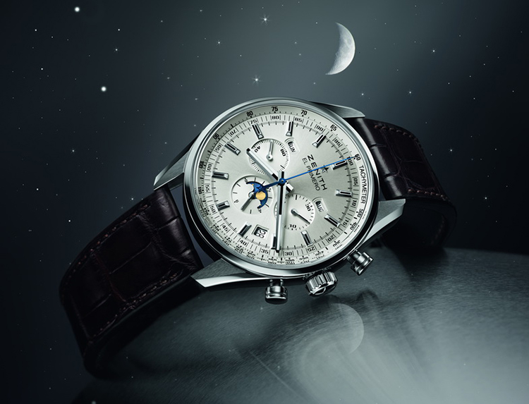 Уникальная в своём роде швейцарская мануфактура «Zenith», известная своими оригинальными коллекциями стильных и функциональных часов и имеющая представительства во всех ведущих странах мира, представляет одну из последних своих новинок – автоматический хронограф с колонным колесом, индикатором дня недели, даты, месяца и фазы Луны.